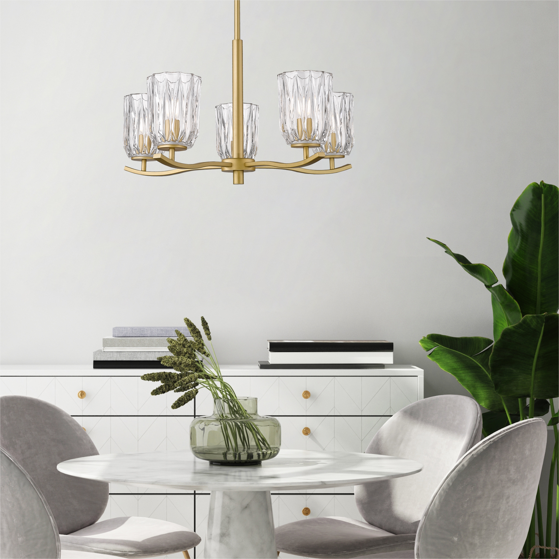 TAZZA Lampă suspendată, cod: P0590-05B-V7AC, 5 x E14 max 40W, corp metalic auriu, abajur sticlă clară