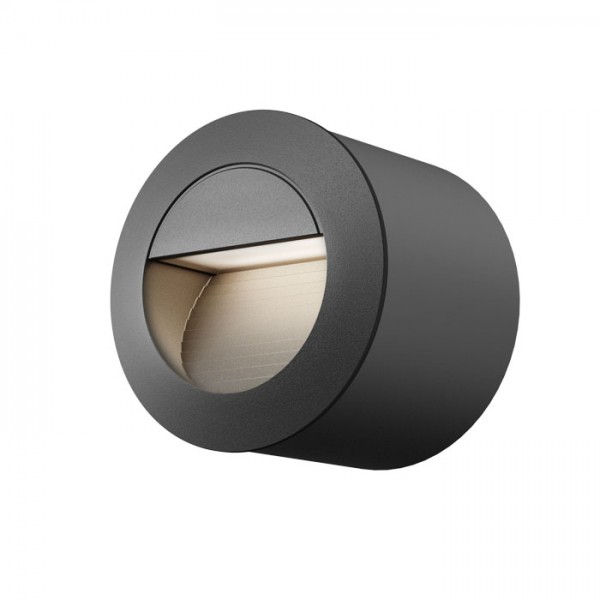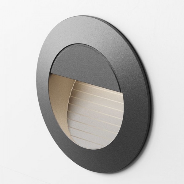 Corp de iluminat rotund încastrat de perete potrivit pentru utilizare în exterior și în interior. Inclusiv cutia de montare. Instalarea doar cu iluminare în jos.